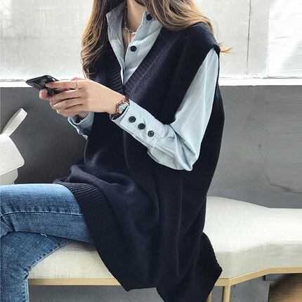 ベスト ニットベスト ウール 丈長め 無地 Vネック シンプル 大人かわいい カジュアル 春 秋 冬 普段着 お出かけ TP-007KU