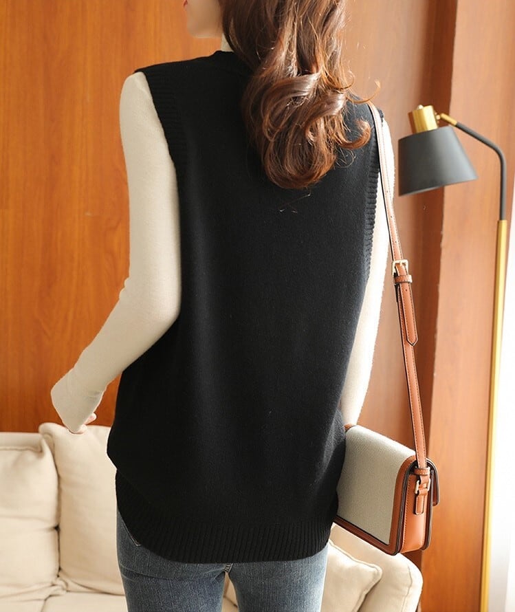 トップス 厚手 ニット ベスト 秋 冬 おしゃれ 大人かわいい きれいめ カーディガン Vネック アウター ルーズ ストライプ ウール ロング 通勤 お出かけ デート TP-009RT