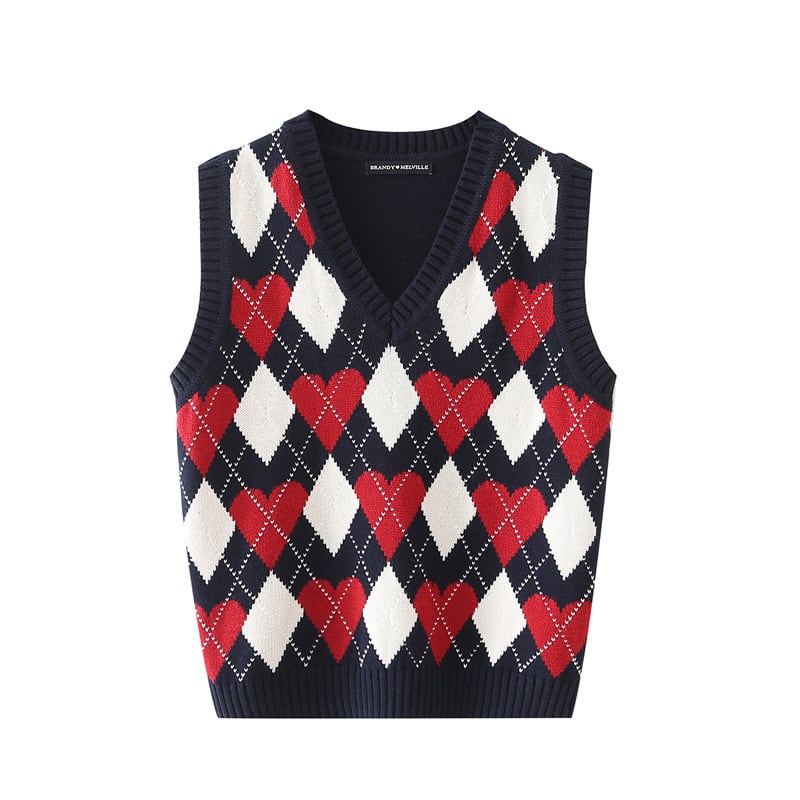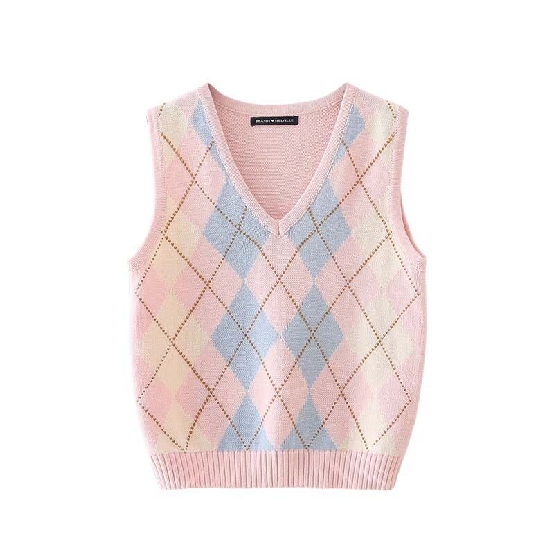 ベスト ニットベスト ノースリーブ チェック柄 アーガイル柄 Vネック キュート トラッド 春 秋 冬 シンプル カジュアル 大人かわいい 重ね着 お出かけ 普段着 TP-010KU