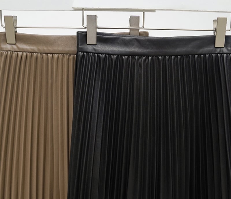 プリーツスカート ミモレ丈 ミディアム丈 無地 フェイクレザー フィッシュテール ブラック ブラウン 秋冬 シンプル Aライン ハイウエスト エレガント フェミニン お出かけ デート 通勤 SK-004YK