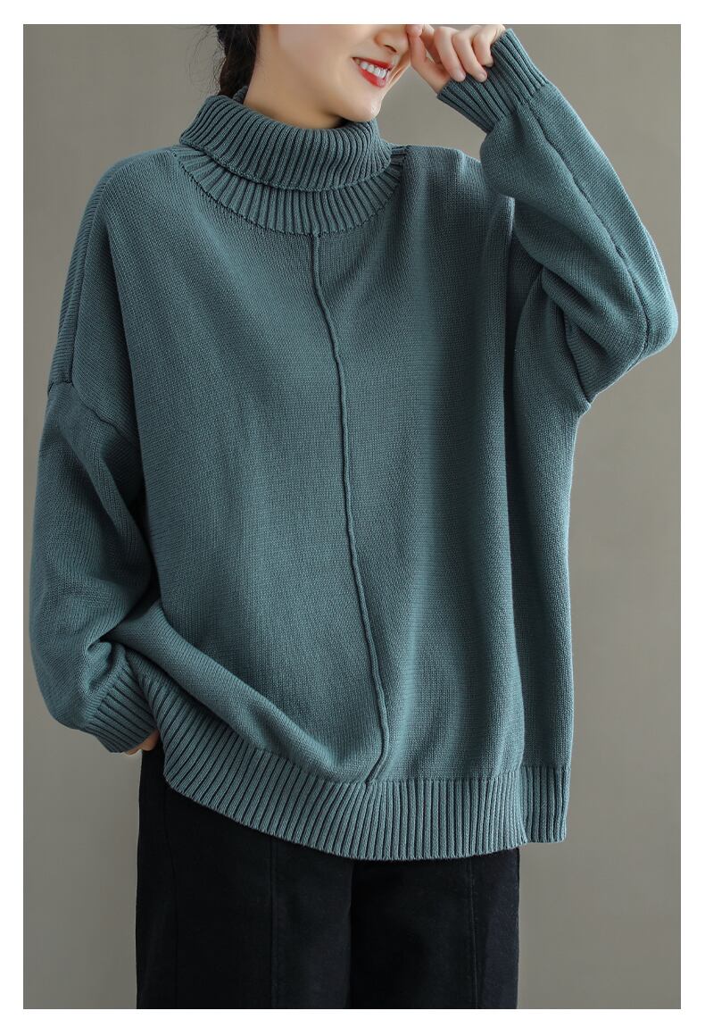 トップス セーター コットン 秋 冬 レトロ タートルネック ワイルド ルーズ パッド入り プルオーバ ー ワンサイズ ステッチ 通勤 お出かけ TP-018RT