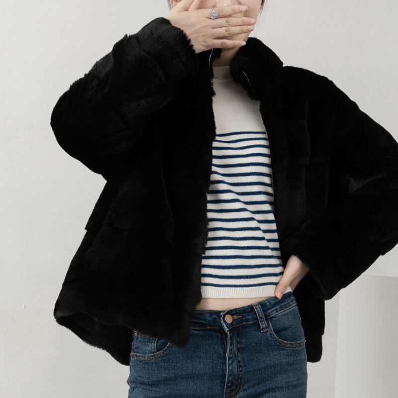 ジャケット コート アウター フェイクファー 襟 スタンドカラー 長袖 無地 ジッパー シンプル 秋冬 厚手 防寒 暖かい お出かけ デート フェミニン OU-006YK