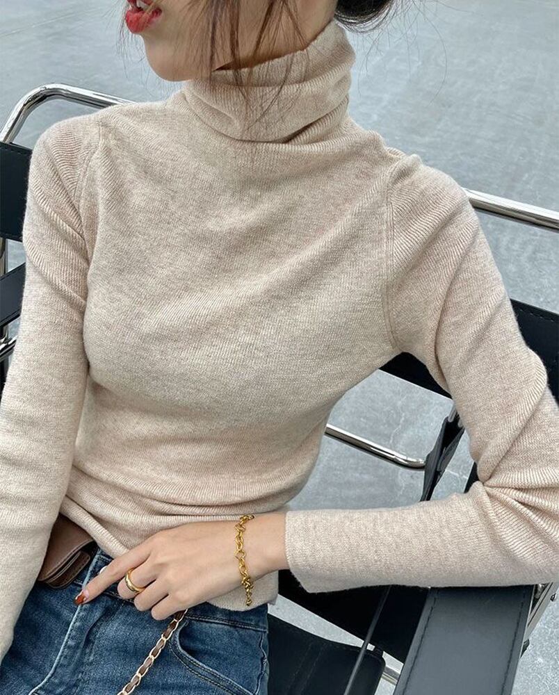 タートルネックセーター ニット トップス 長袖 無地 プルオーバー シンプル きれいめカジュアル フェミニン スリムフィット 伸縮性 秋冬 お出かけ 通勤 TP-026YK