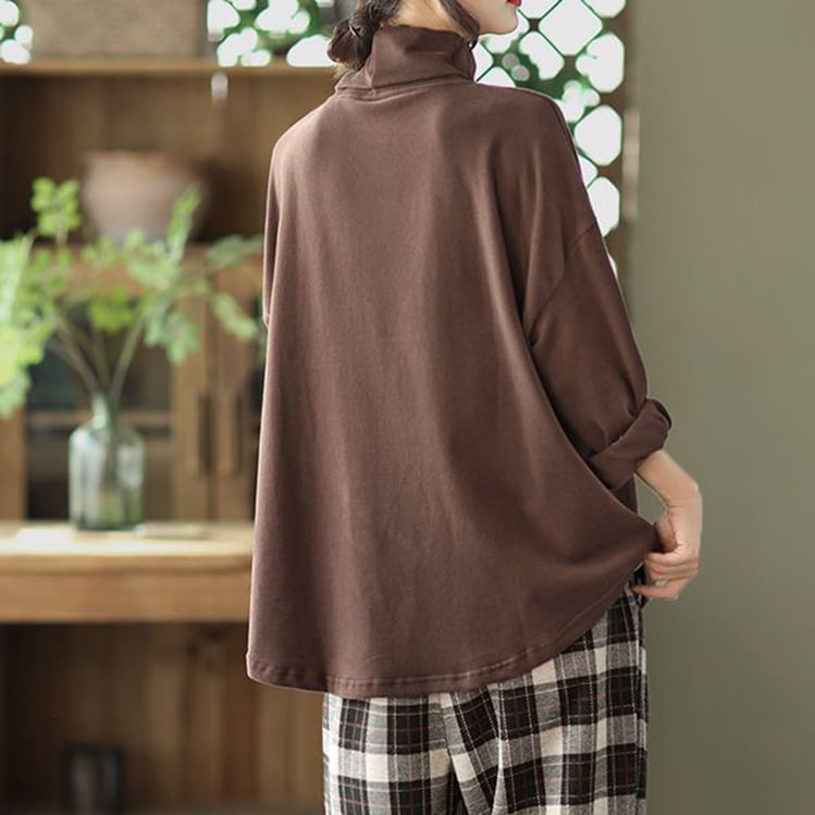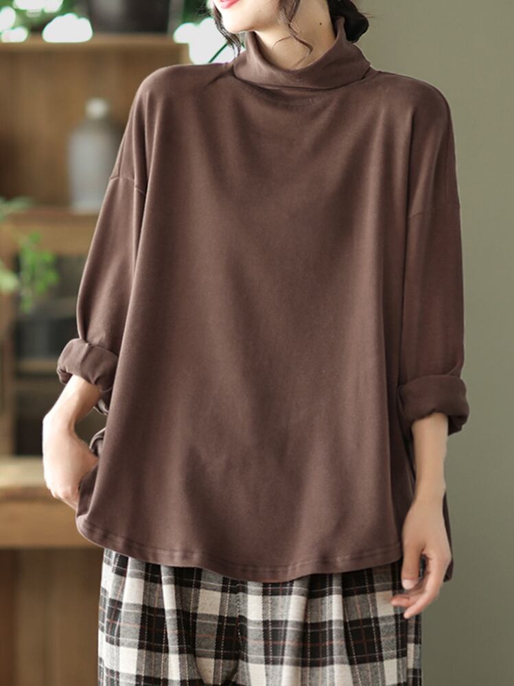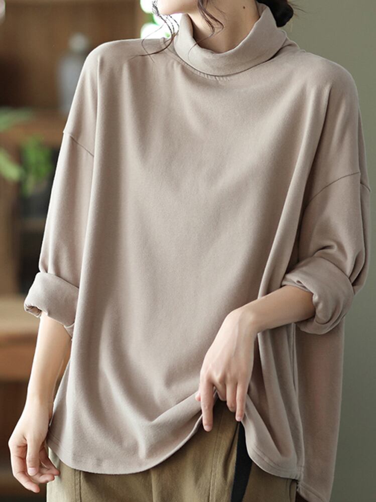 ハイネックシャツ 長袖 ドルマンスリーブ プルオーバー 無地 シンプル ルーズ オーバーサイズ カジュアル お出かけ 通勤 アウトドア レジャー TP-028YK