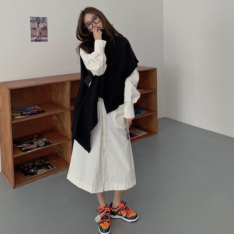 シャツワンピース ホワイト ミモレ丈 長袖 襟 ポケット付き 無地 ラフ カジュアル 春 秋 冬 ナチュラル デート お出かけ おしゃれ OP-001YK