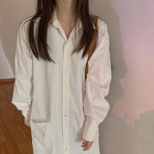 ナチュラルな白のシャツワンピース。