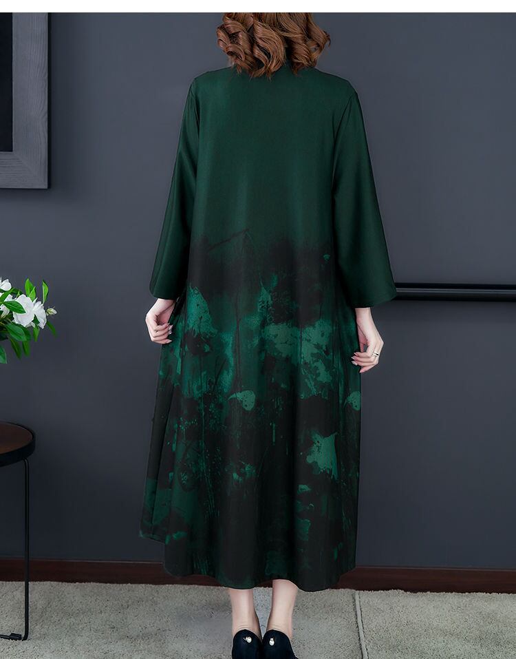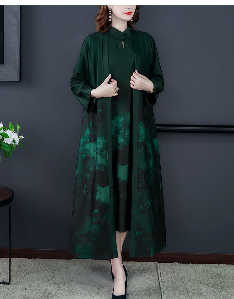 ツーピース セット ミディアム丈ワンピース ロングカーディガン スタンドカラー Aラインスカート チャイナ風 レッド グリーン パーティ フォーマル お出かけ ST-002YK