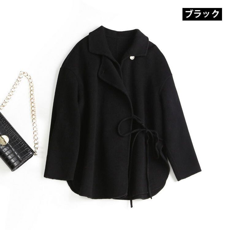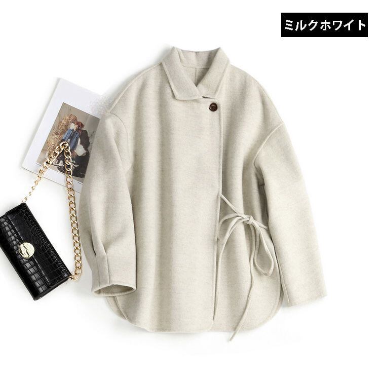ウールコート ショート丈 前ボタン 無地 シンプル サイドスリット ゆったり 秋冬 あったかい エレガント フェミニン お出かけ デート 通勤 カジュアル OU-010YK