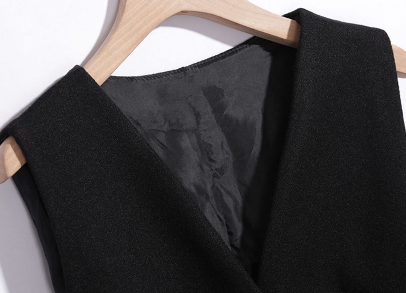 ワンピース ノースリーブ Vネック ベスト ミディアム ベルト カシュクール 無地 シンプル 秋冬 エレガント フェミニン 通勤 おでかけ フォーマル AI-007YK