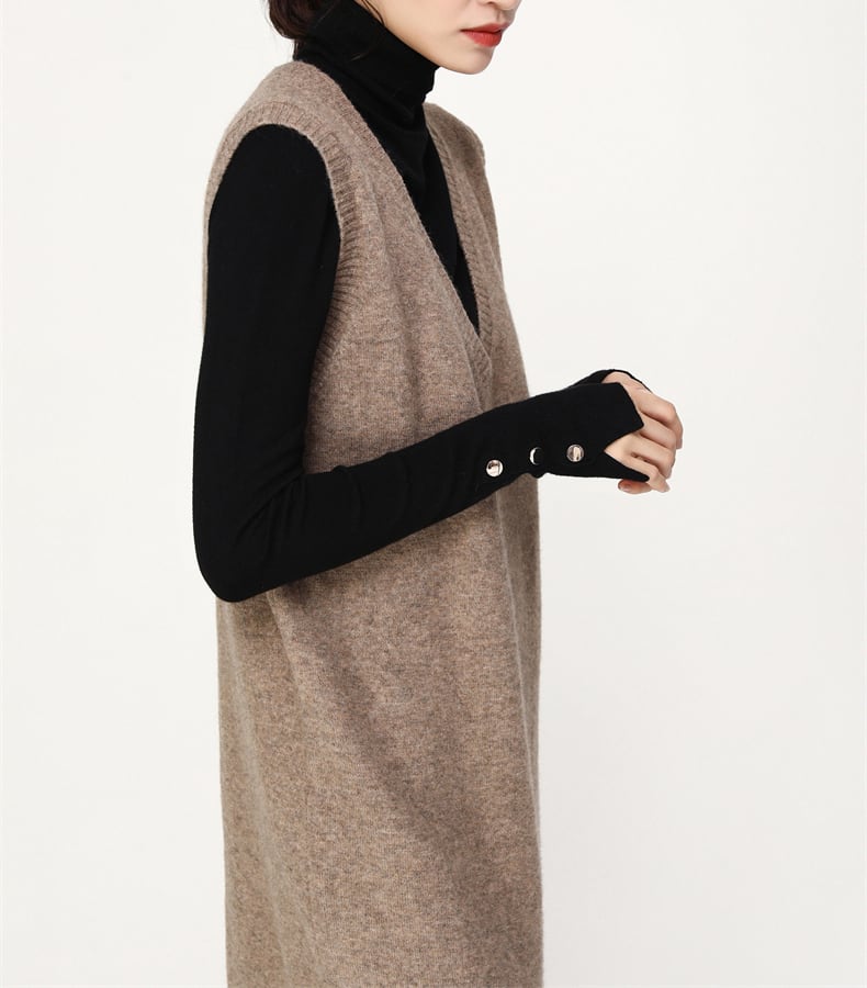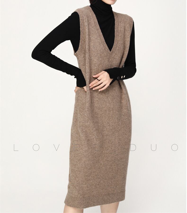 ジャンパースカート ジャンスカ Vネック ノースリーブ ニット ミディアム丈 Aライン 無地 シンプル 体型カバー 秋冬 通勤 エレガント お出かけ デート AI-012YK