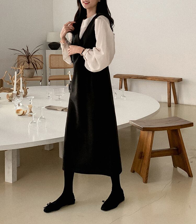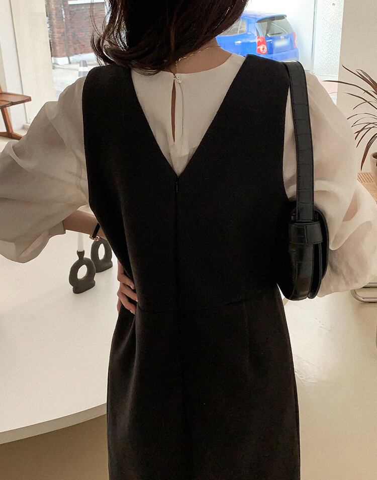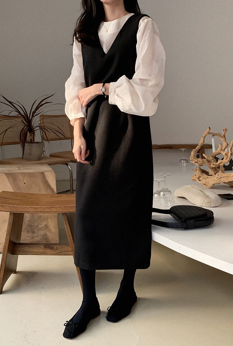 チョッキ ロングスカート ハイウエスト 秋 冬 おしゃれ 大人かわいい きれいめ Vネック ウール ブラック ロングベストスカート 大きいサイズ ヘッジ ノースリーブ ジッパー お出かけ デート 通勤 OP-003RT