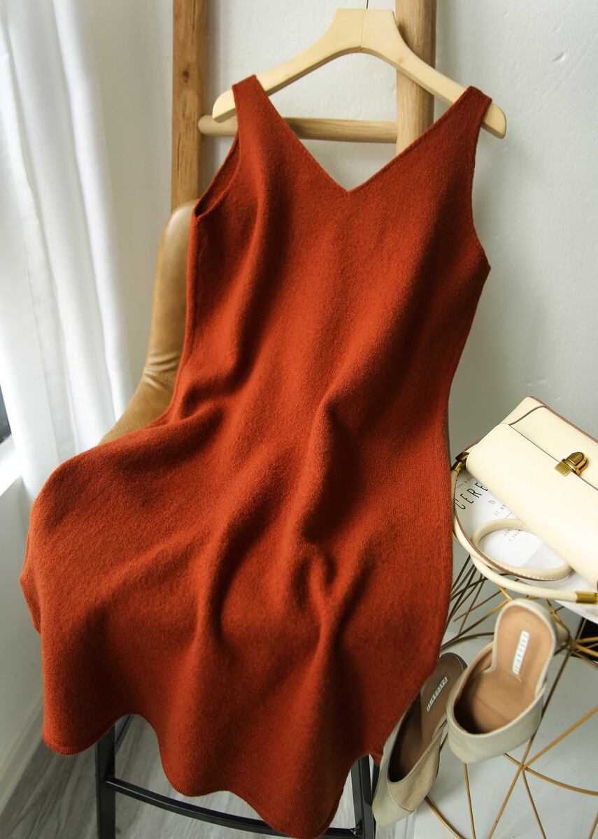 ジャンパースカート ジャンスカ Vネック ウール ノースリーブ ミディアム丈 膝上 ストレート 体型カバー 無地 シンプル 通勤 お出かけ デート AI-015YK