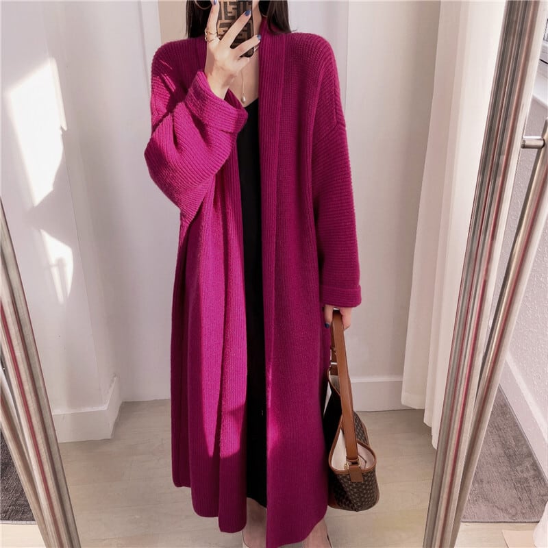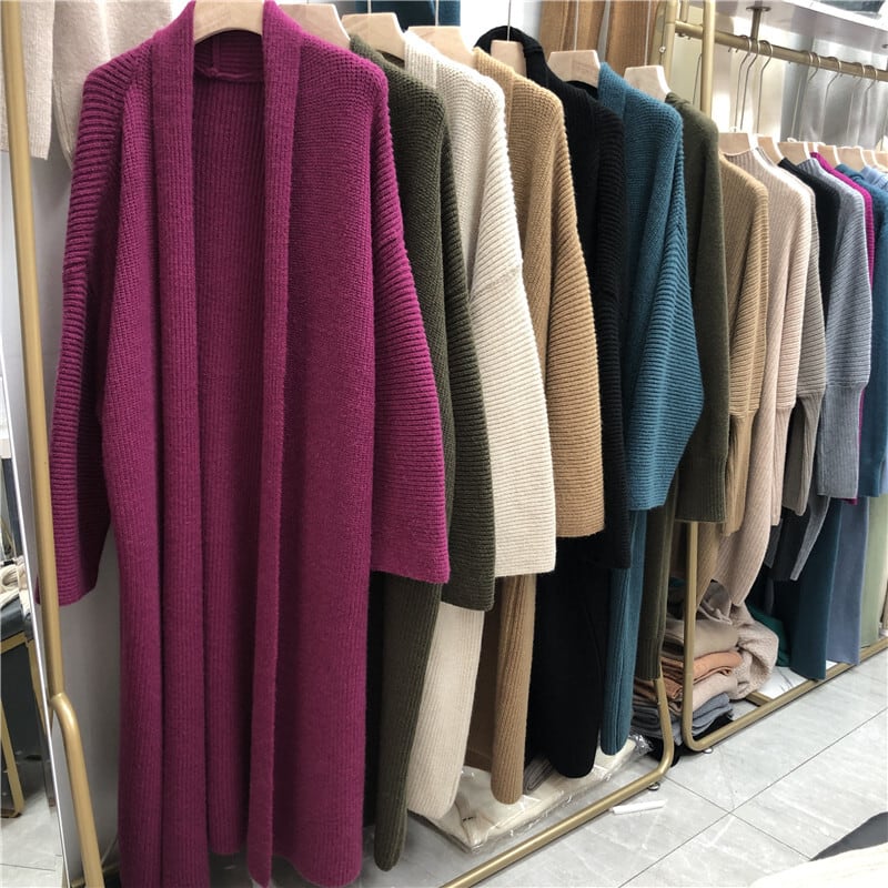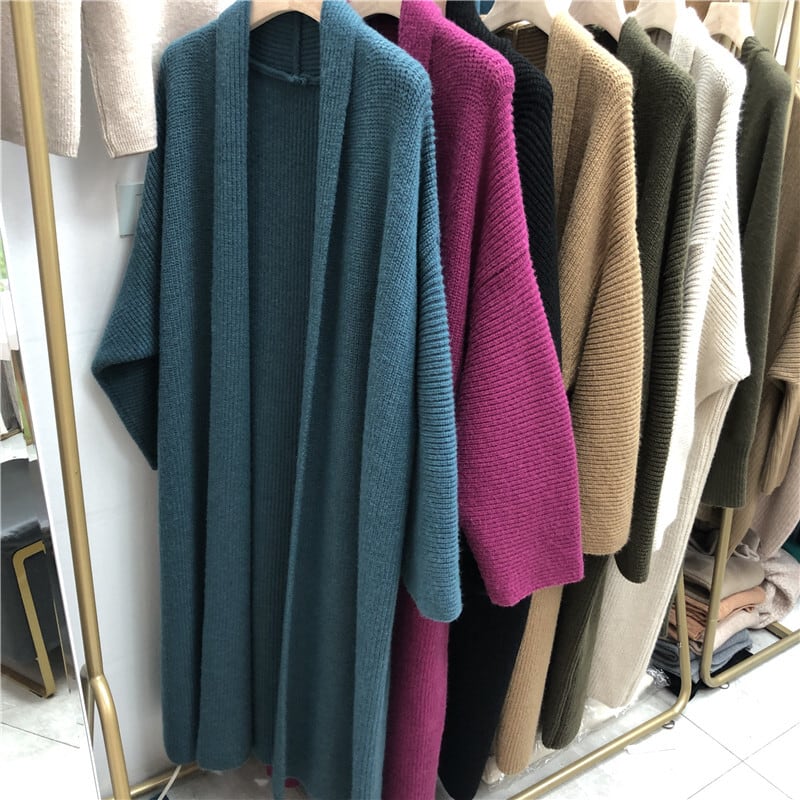 コーディガン ニット カーディガン 羽織り ロング丈 マキシ丈 長袖 ドルマンスリーブ リブ ライトアウター 体型カバー シンプル 無地 カジュアル エレガント あったかい 秋冬 ゆったり 柔らか 通勤 普段着 お出かけ OU-013YK