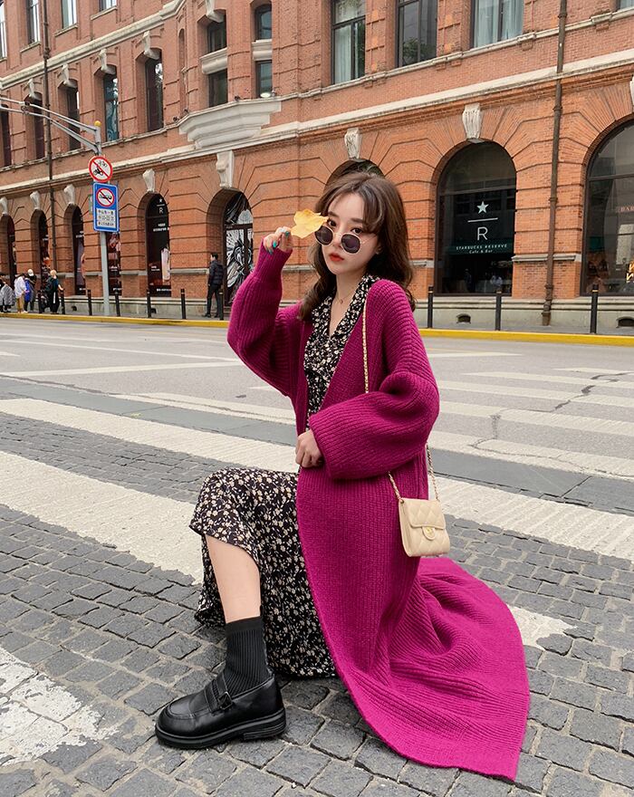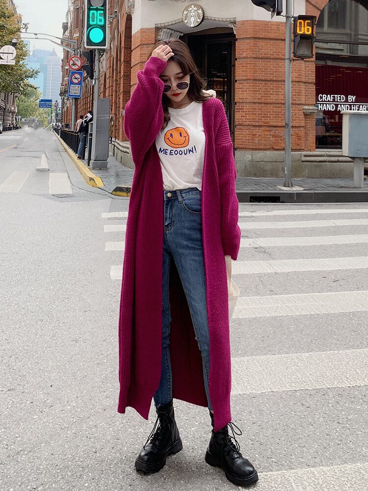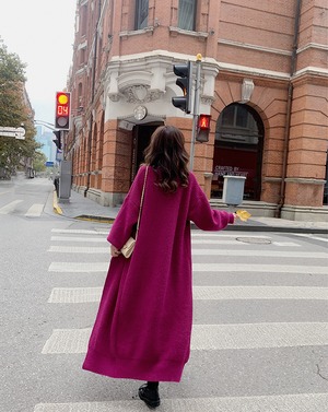 コーディガン ニット カーディガン 羽織り ロング丈 マキシ丈 長袖 ドルマンスリーブ リブ ライトアウター 体型カバー シンプル 無地 カジュアル エレガント あったかい 秋冬 ゆったり 柔らか 通勤 普段着 お出かけ OU-014YK