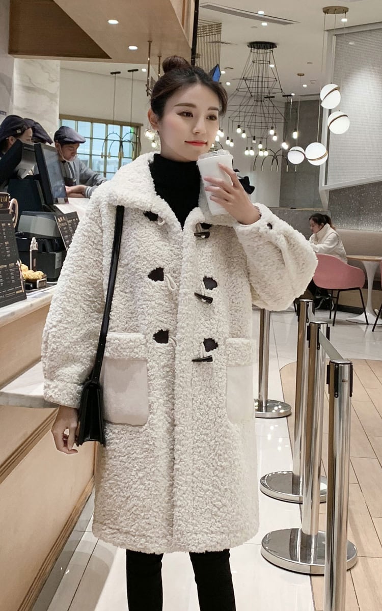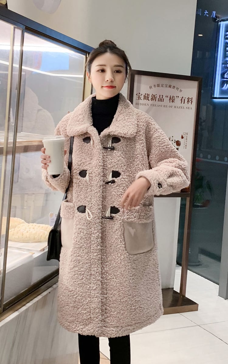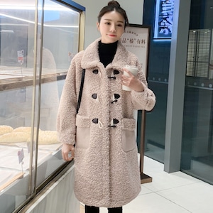 ダッフルコート アウター ボア ミディアム丈 襟 トグル ウール混 厚手 秋冬 暖かい 防寒 カジュアル 体型カバー ゆったり お出かけ デート 普段着 OU-026YK