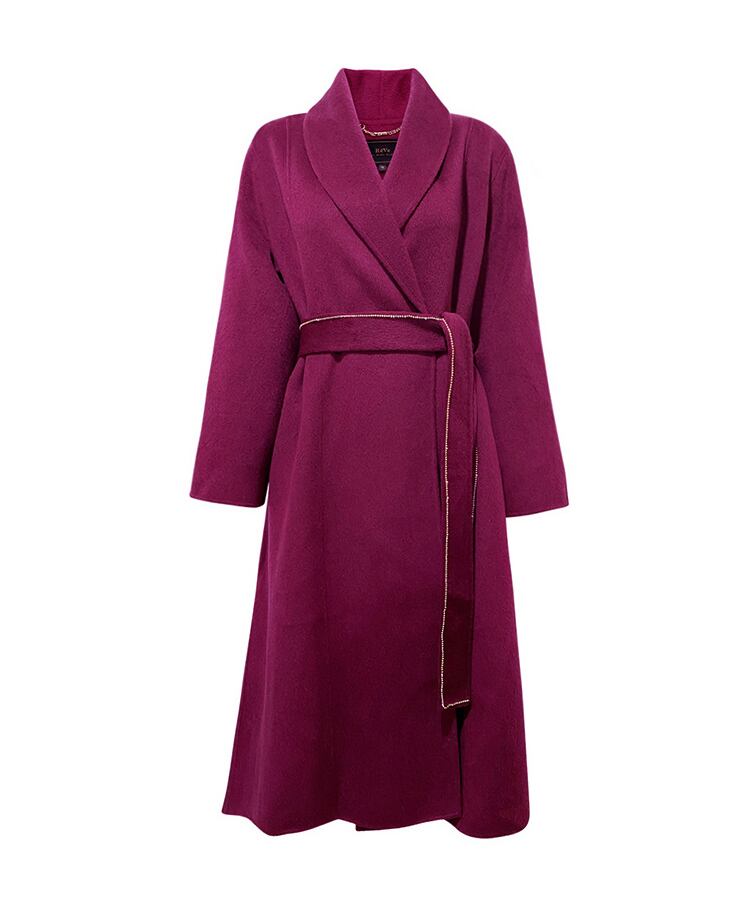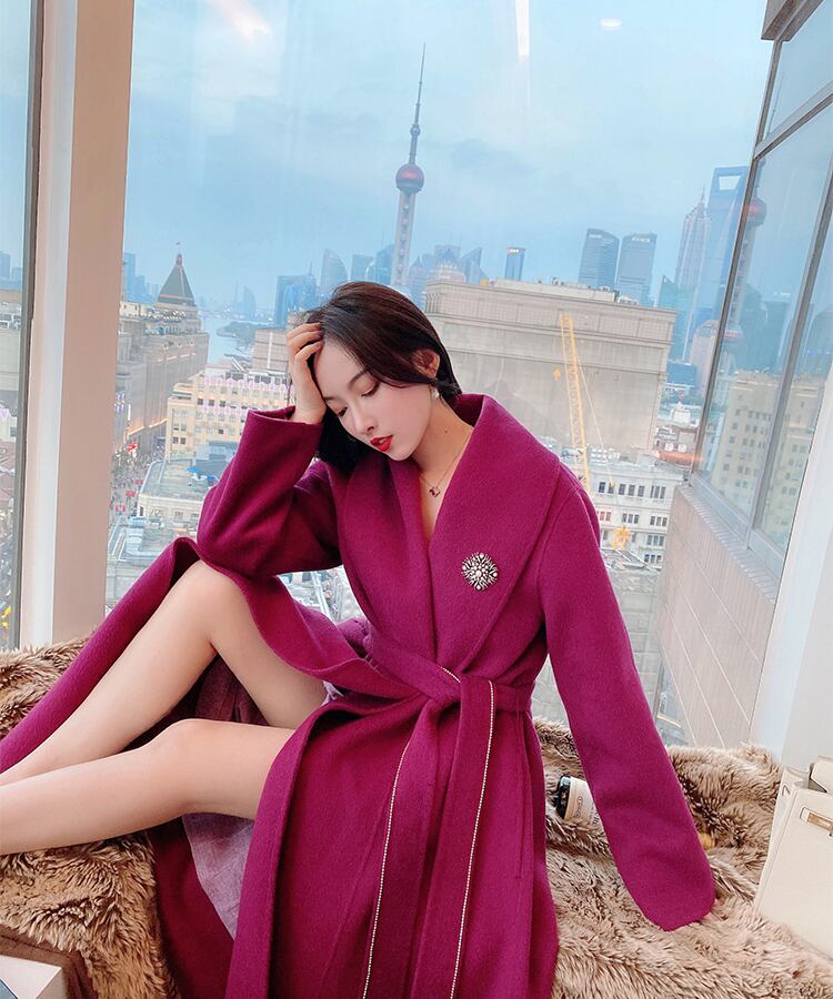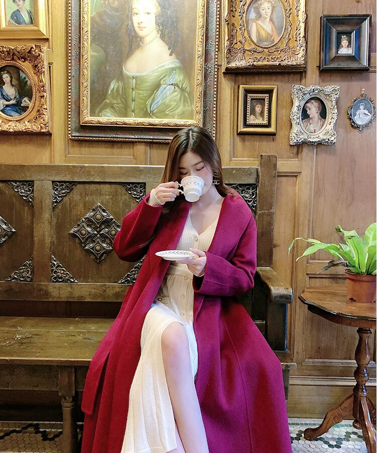 コーディガン コート アウター 羽織り ロング丈 Aライン Vネック ハイウエスト 秋冬 ウール混 ベルト ラインストーン エレガント 上品 ゴージャス 高級感 通勤 お出かけ お呼ばれ OU-022YK