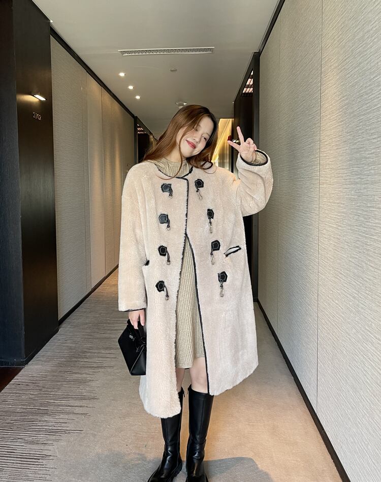 ダッフルコート ミディアム丈 ノーカラー ラムウール ベージュ ブラック ホワイト ノーカラー 暖かい 防寒 秋冬 ゆったり カジュアル きれいめ 通勤 普段着 お出かけ OU-033YK