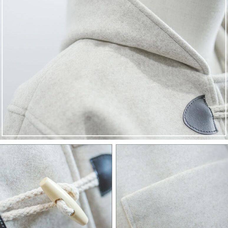 ダッフルコート ミディアム丈 フード 長袖 無地 オフホワイト ブラック トグル カジュアル 秋冬 暖かい 防寒 ゆったり 体型カバー お出かけ 普段着 通勤 OU-049YK