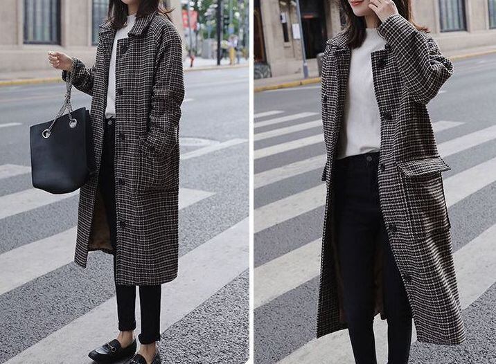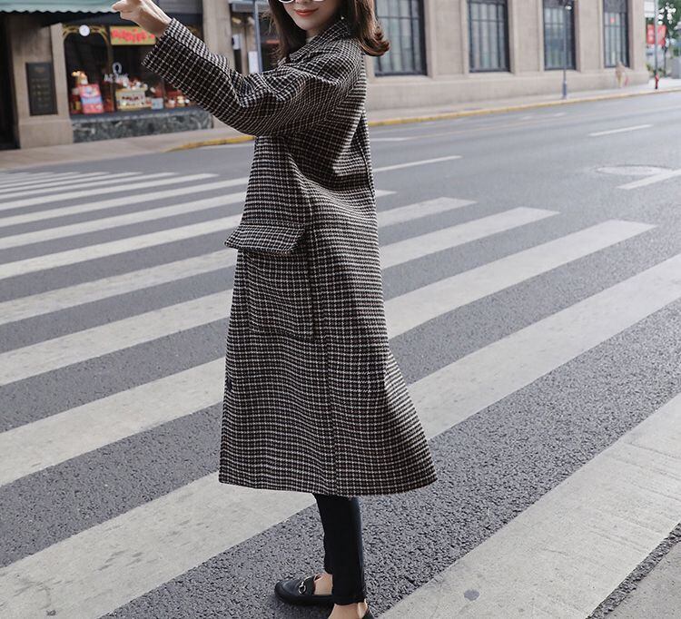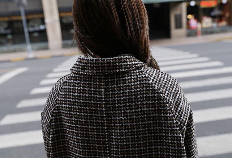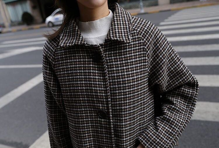 コート ステンカラーコート アウター レディース ミディアム丈 チェック柄 ウール混 厚手 秋冬 エレガント きれいめ お出かけ 通勤 普段着 OU-060YK