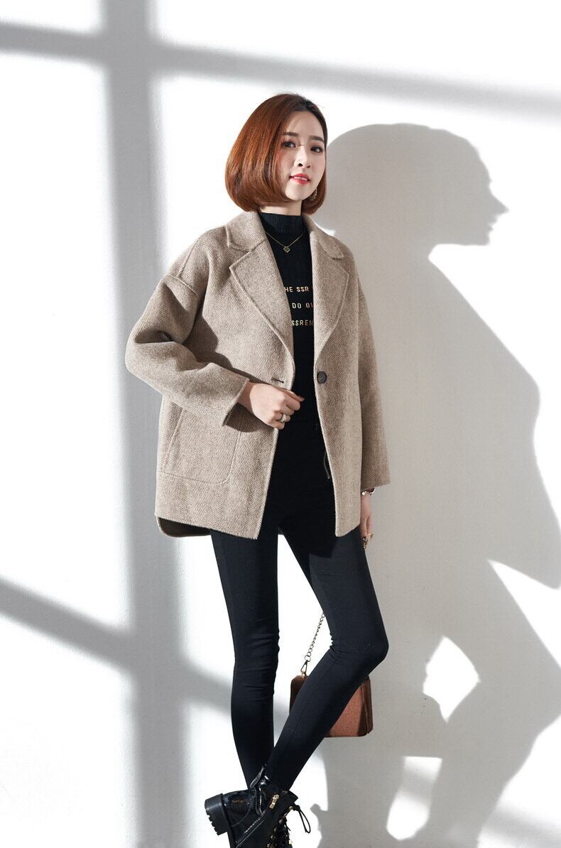 コート ピーコート アウター ショート丈 ヘリンボーン ウール混 シンプル 秋冬 エレガント フェミニン お出かけ デート 通勤 OU-086YK