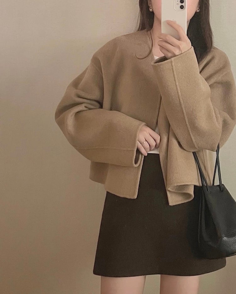 ショートコート レディース 上品 アウター ノーカラー Vネック 長袖 無地 秋冬 エレガント 通勤 お出かけ デート 普段着着 OU-128YK