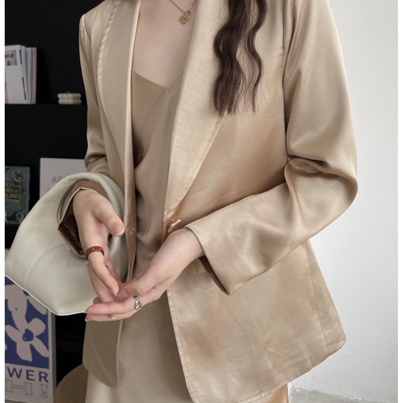 シンプルなデザインに艶やかな光沢がアクセントのセットアップです。