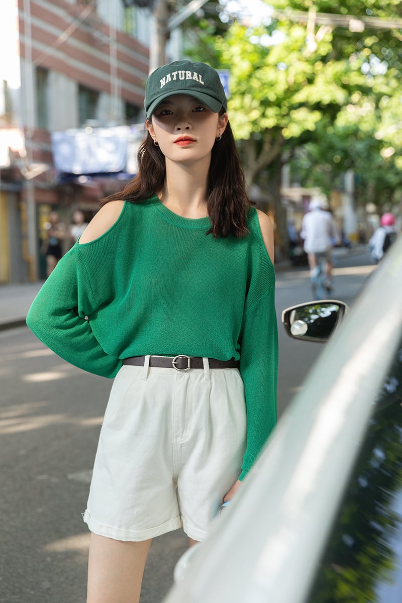 ルーズラウンドネックトップス オフショルダートレーナー カジュアル 春 秋 夏おしゃれ 無地 長袖 ワンサイズ 通勤 お出かけ TP-009SE