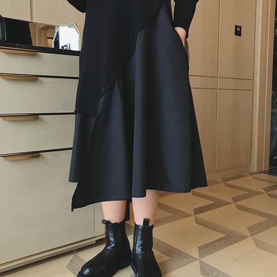 上品なフレアスカートにルーズ感をプラス。