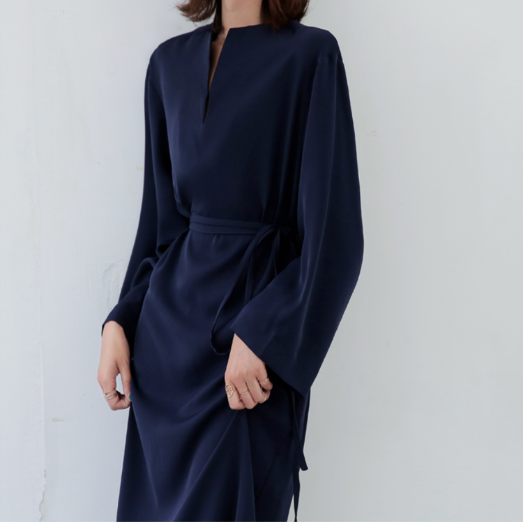 ワンピース レディース 長袖 ミディアム丈 Vネック ハイウエスト ベルト 秋 エレガント 上品 通勤 お出かけ おしゃれ OP-006MS