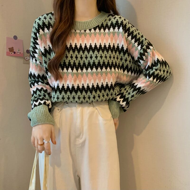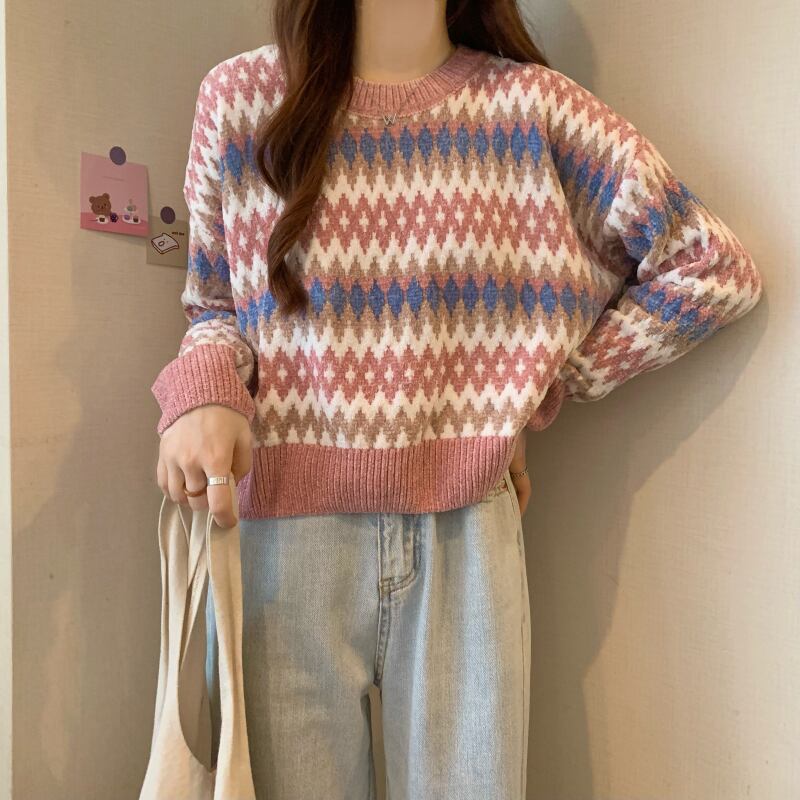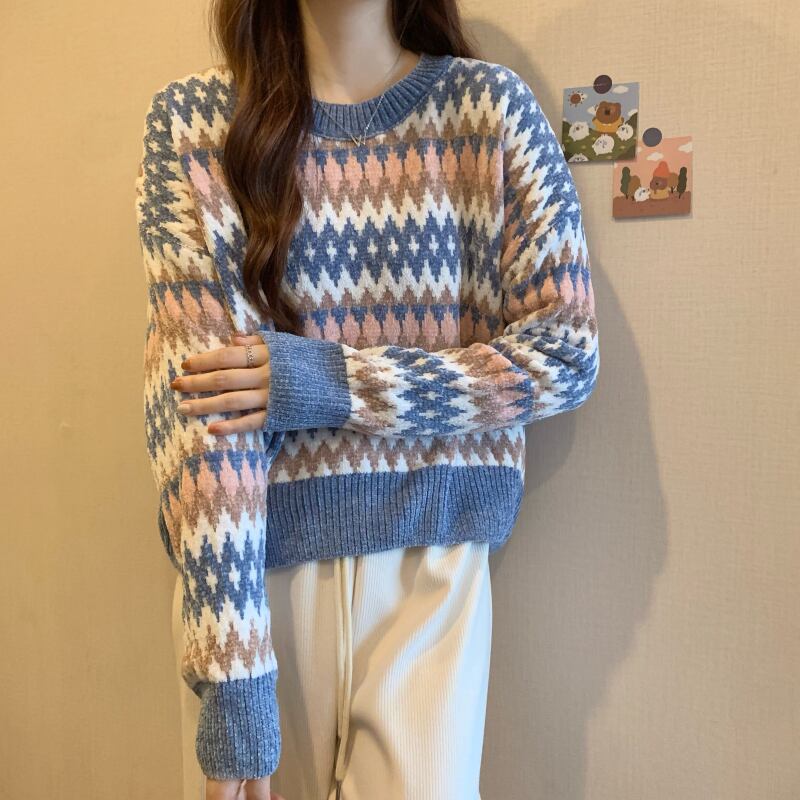 ニット カジュアル 模様 ふわふわ もこもこ 秋 冬 おしゃれ ノルディック 長袖 厚手 お出かけ TP-004GT