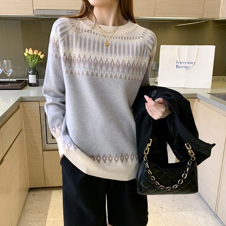 ニットトップス カジュアル 秋 冬 おしゃれ ノルディック フェミニン 長袖 お出かけ TP-005GT