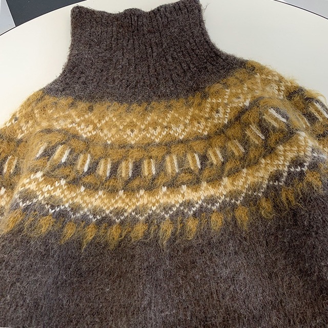 ニットトップス ハイネック カジュアル ゆったり 秋 冬 おしゃれ ノルディック ボーイッシュ トラッド 長袖 お出かけ TP-006GT