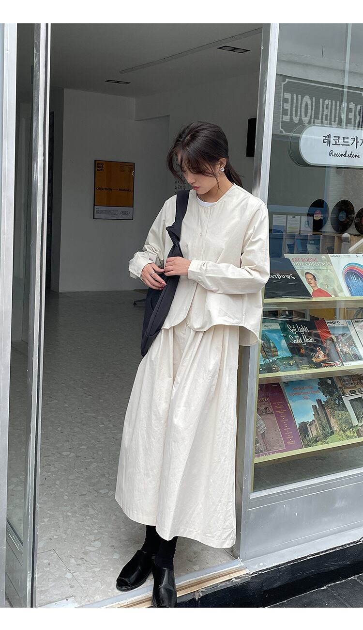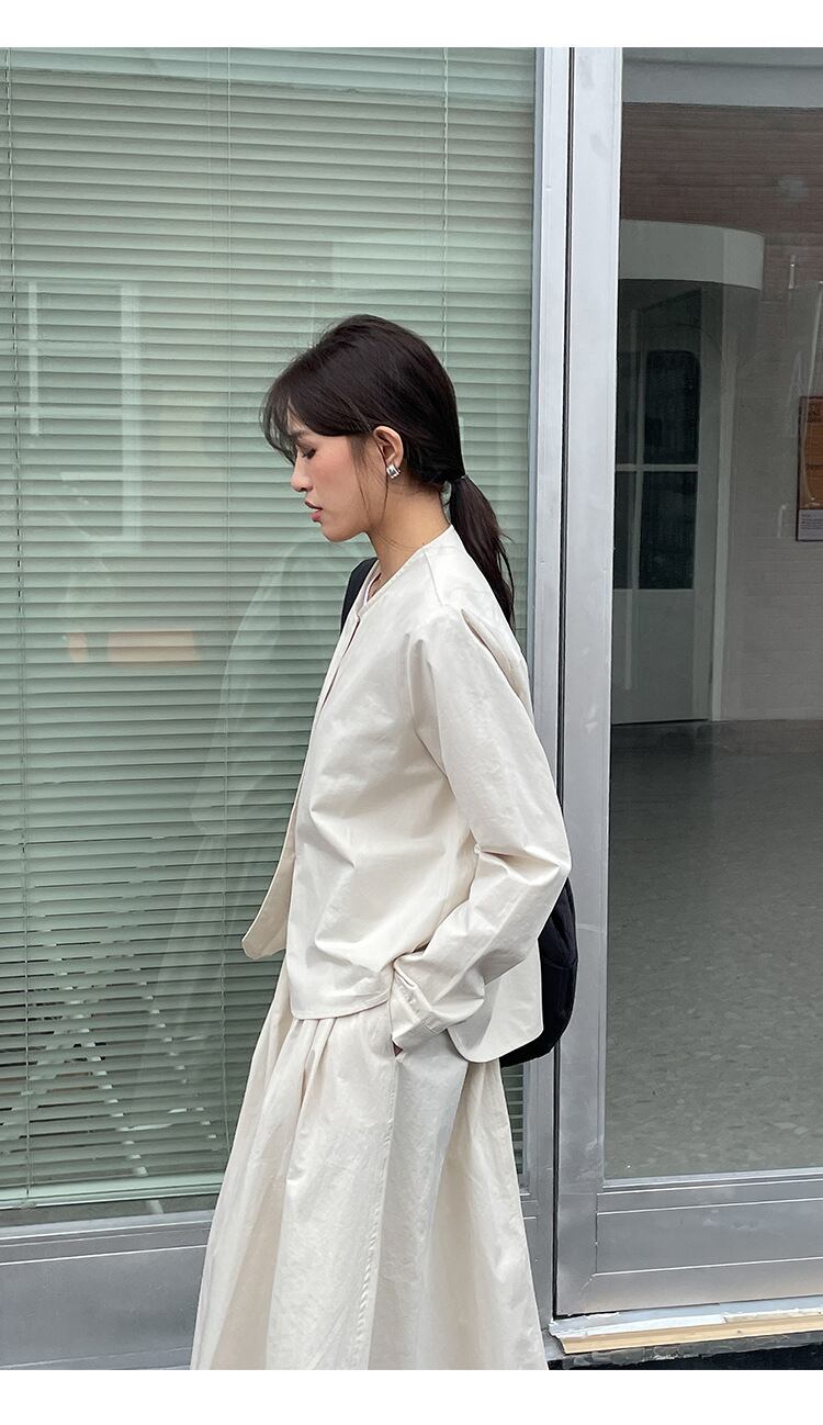 ジャケット ブルゾン アウター ノーカラー コットン ナチュラル ガーリー 韓国 春秋 通勤 お出かけ 普段着 デート OU-006GT