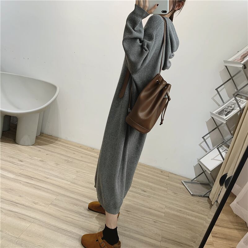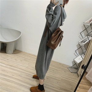 ロングフード ニットワンピース カジュアル 無地 春秋 お出かけ デート OP-007SE