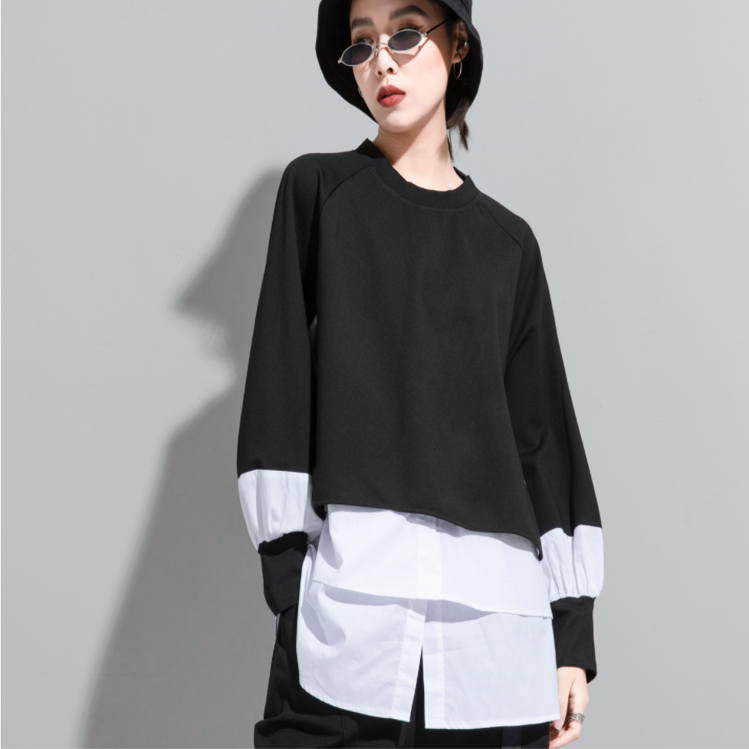 トップス カットソー 重ね着風 スリット アシンメトリー トレーナー カジュアル 春 秋 冬 おしゃれ 無地 長袖 お出かけ TP-006MS