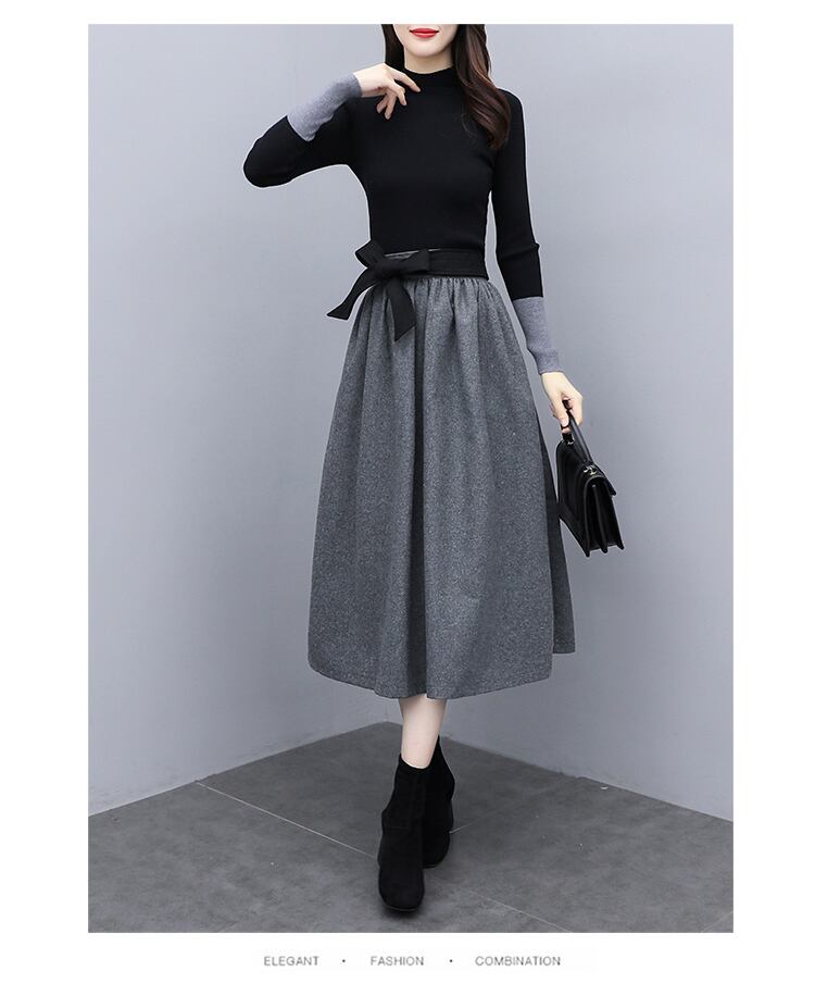 ハーフネック ニットワンピース 長袖 ミディアム丈 Aライン オシャレ 春 秋冬 通勤 お仕事 普段着 お出かけ OP-010SE