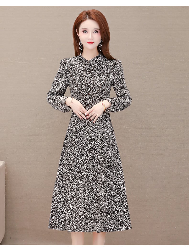 ワンピース 膝下丈 ミモレ丈 フレアスカート 総柄 花柄 フラワー フリル 大きいサイズ パーティー 上品 エレガント ガーリー 春 秋 通勤 お出かけ デート オケージョン OP-020GT