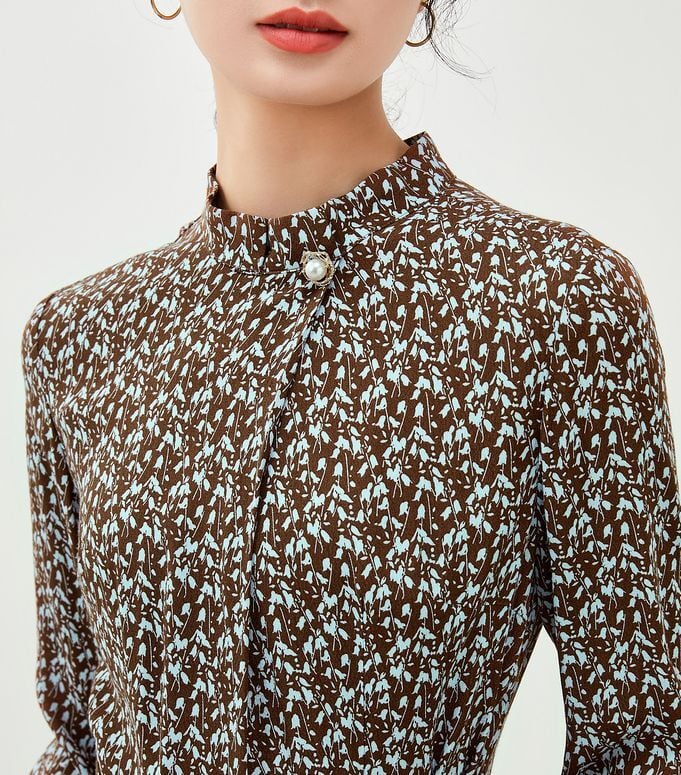 ワンピース レディース 長袖 スタンドカラー 花柄 ミディアム丈 膝下 上品 エレガント 春 秋 冬 通勤 フォーマル パーティ OP-052YK