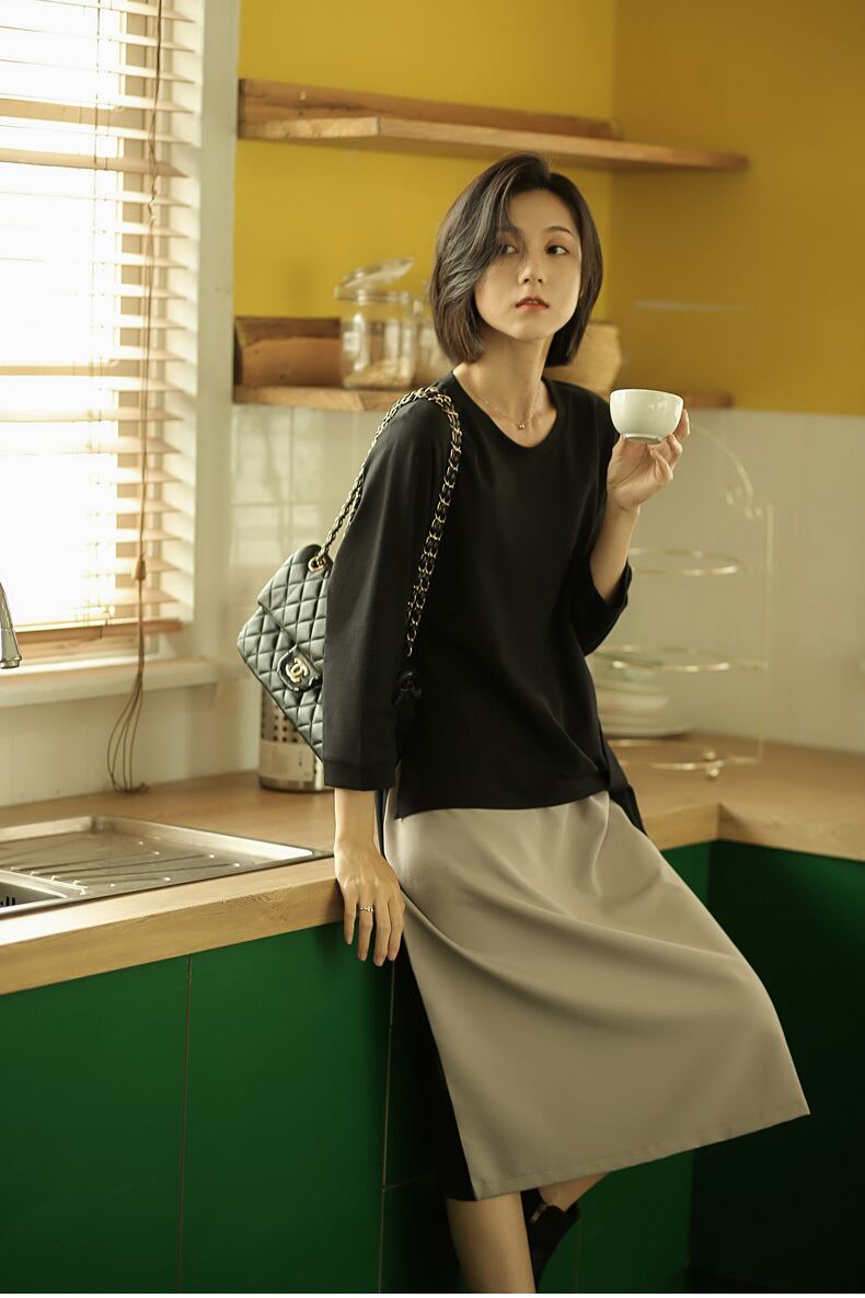 ロングワンピース フェイク ツーピース ラウンドカラー 長袖 ミドル丈 Aタイプ ドレス 秋冬 春 おしゃれ 無地ナチュラルワンピース 大人 上品 通勤 お出かけ デート OP-026SE