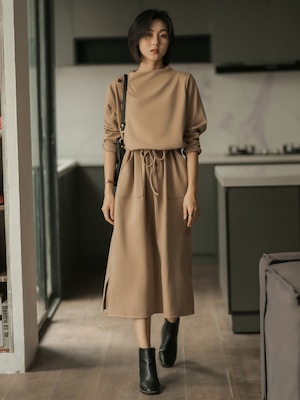 長袖 ドレス ニットワンピース ハイウエスト ラウンドネック ロングスカート 大人 上品 お仕事 通勤 お出かけ デート OP-034SE