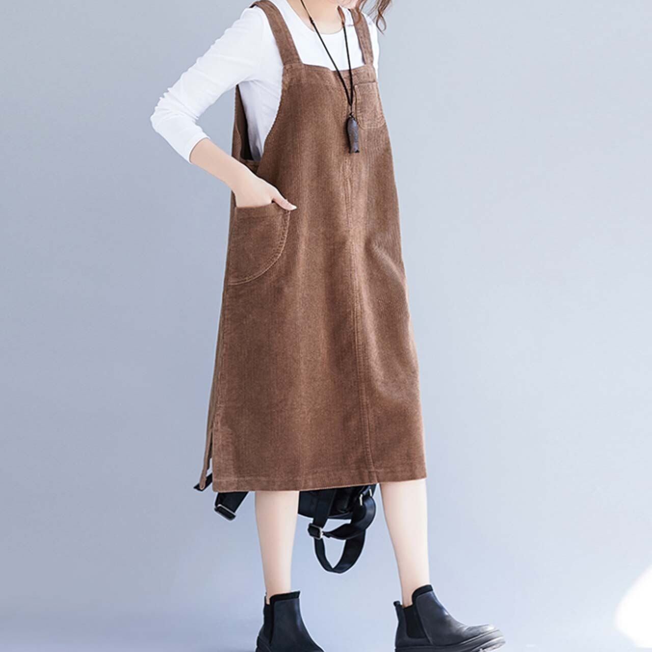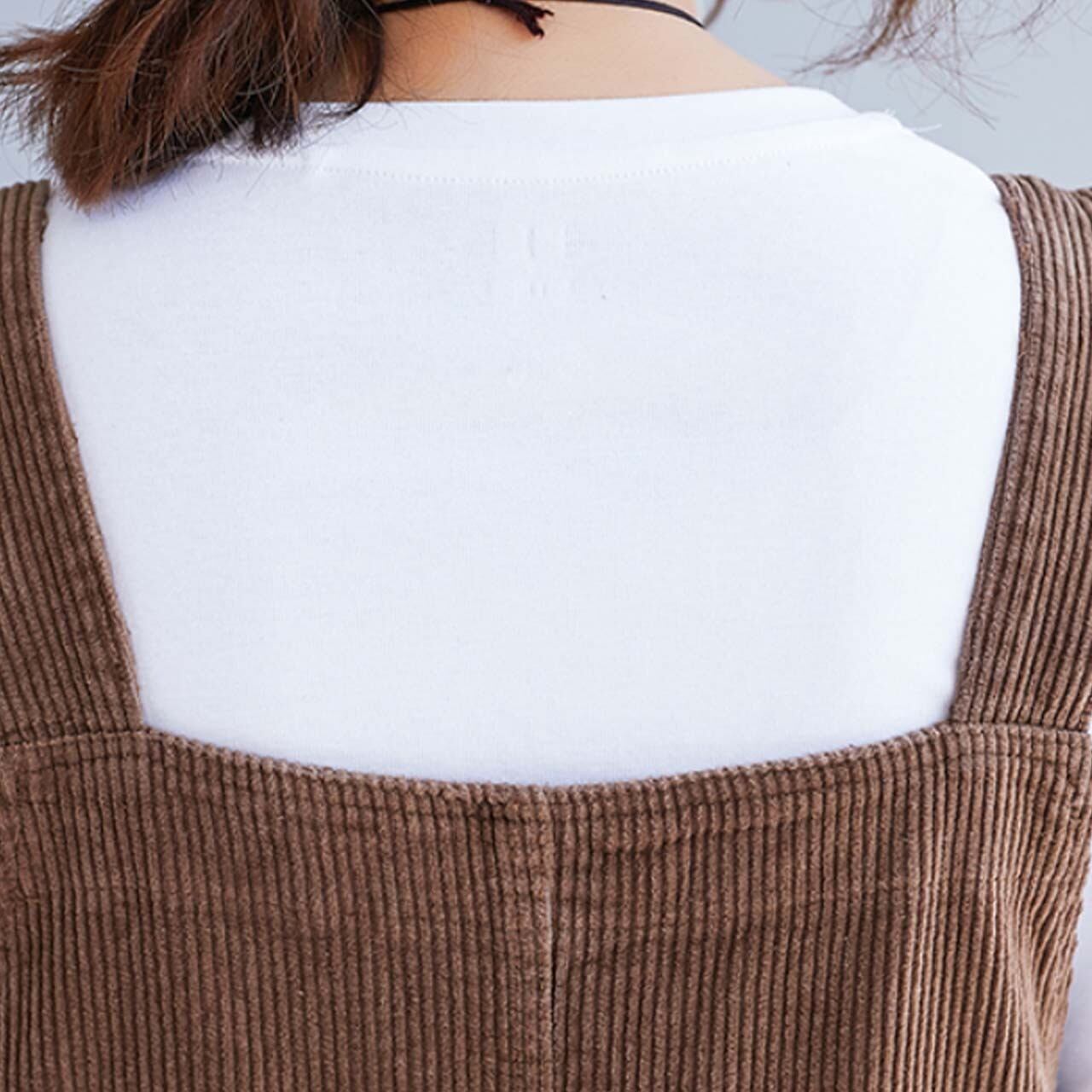 定番のジャンバースカート。コーデュロイ生地で大きめサイズなのでゆるりと穿けてカジュアルコーデに最適です。