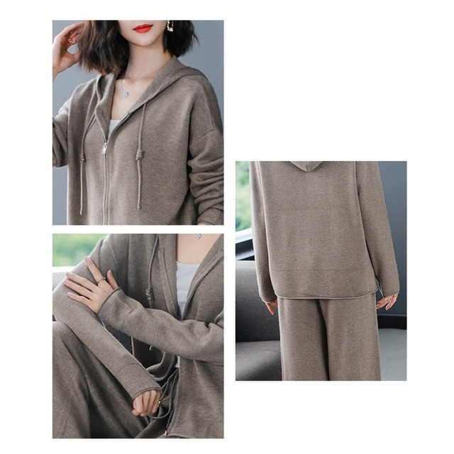 セットアップ ツーピース 2点セット ニット ウール フード付き ジップパーカー 長袖 ロングパンツ シンプル 大人カジュアル デイリー ルームウェア ST-001CA