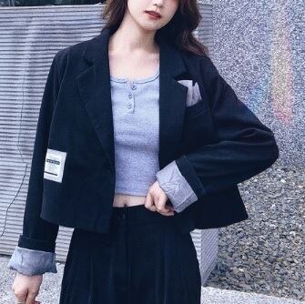ジャケットは短めの着丈でバランスよく着こなせます。