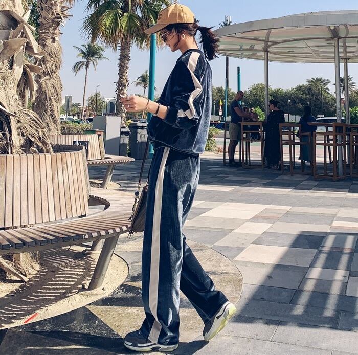 セットアップ ツーピース 2点セット 上下 ジャージ ベロア調 ジップ ジャケット パンツ ワイドレッグパンツ ポケット付き サイドライン 春秋 新作 バイカラー レディース ロングパンツ シンプル カジュアル デイリー お出かけ ルームウェア スポーツ ST-012CA