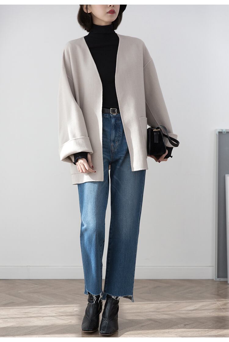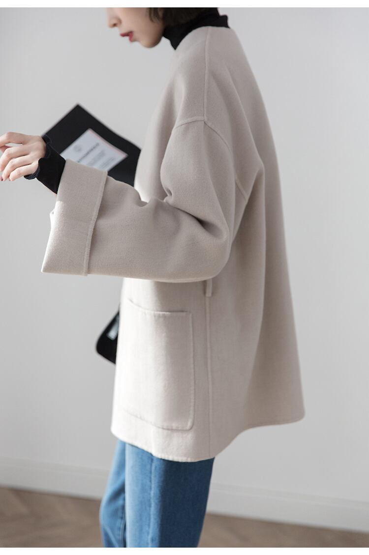 ガウンコート アウター ウールコート カシミア カーデ風 レディース ドロップショルダー 長袖 ボタンレス ノーカラー ポケット付き ベルト ミディアム丈 ハーフ丈 ワントーン 無地 きれいめ シンプル カジュアル 通勤 タウン お出かけ デート OU-030CA