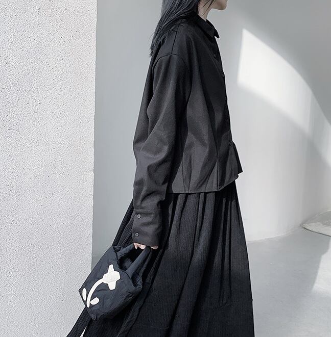 フロントプリーツブラウス トップス ブラウス シャツ プリーツ 長袖 ワントーン 無地 フロントボタン レディース 春秋 ゆったり おしゃれ トレンド シンプル モード レトロ ノスタルジック タウン お出かけ デート TP-041CA