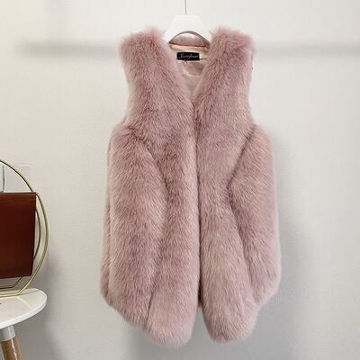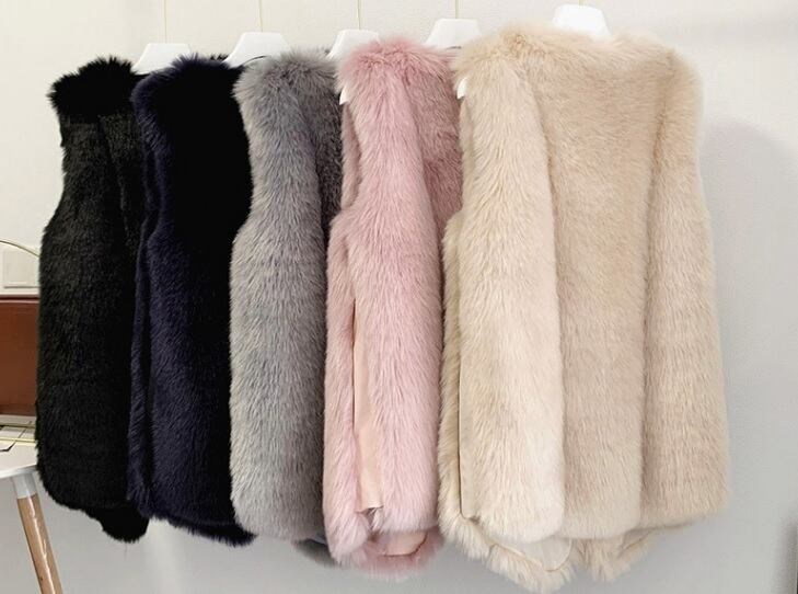 エコファーベスト ベスト イミテーションファー フェイクファー アウター Vネック レディース 前下がり 大きめサイズ 大きいサイズ サイズ豊富 秋冬 ふわふわ ワントーン 無地 ミディアム ノースリーブ あったか 防寒 トレンド きれいめ エレガント シンプル カジュアル 通勤 タウン お出かけ デート OU-059CA