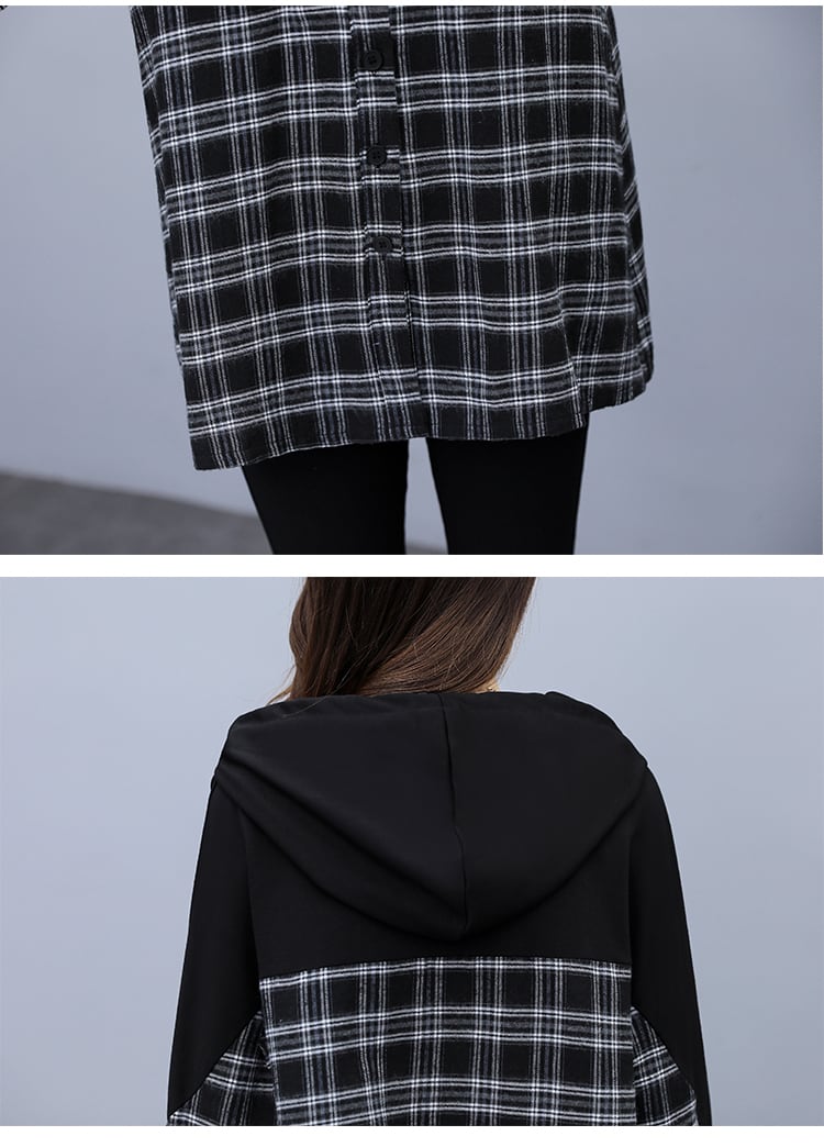 お出かけや毎日のデイリーコーデにぴったりの、大人かわいいチェック柄のチュニック丈パーカー。