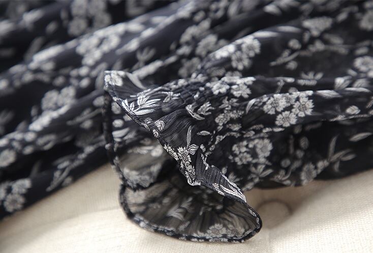 花柄シフォンワンピース ワンピース ワンピ シフォン ロング丈 長袖 花柄 フラワー フローラル プリント Aライン ファネルネック 軽やか 春秋 インナー付き ツーピース ペチコート ペチワンピース レディース シンプル フェミニン 大人かわいい レトロ シック 上品 ノスタルジック タウン お出かけ デート OP-074CA