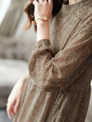 ボタニカルワンピース ワンピース ワンピ 長袖 ミモレ丈 花柄 フラワー フローラル ボタニカル プリント ルーズウエスト Aライン 軽やか 春秋 レディース 大きめサイズ 大きいサイズ サイズ豊富 シンプル きれいめ 上品 エレガント シック レトロ ノスタルジック タウン お出かけ デート OP-084CA